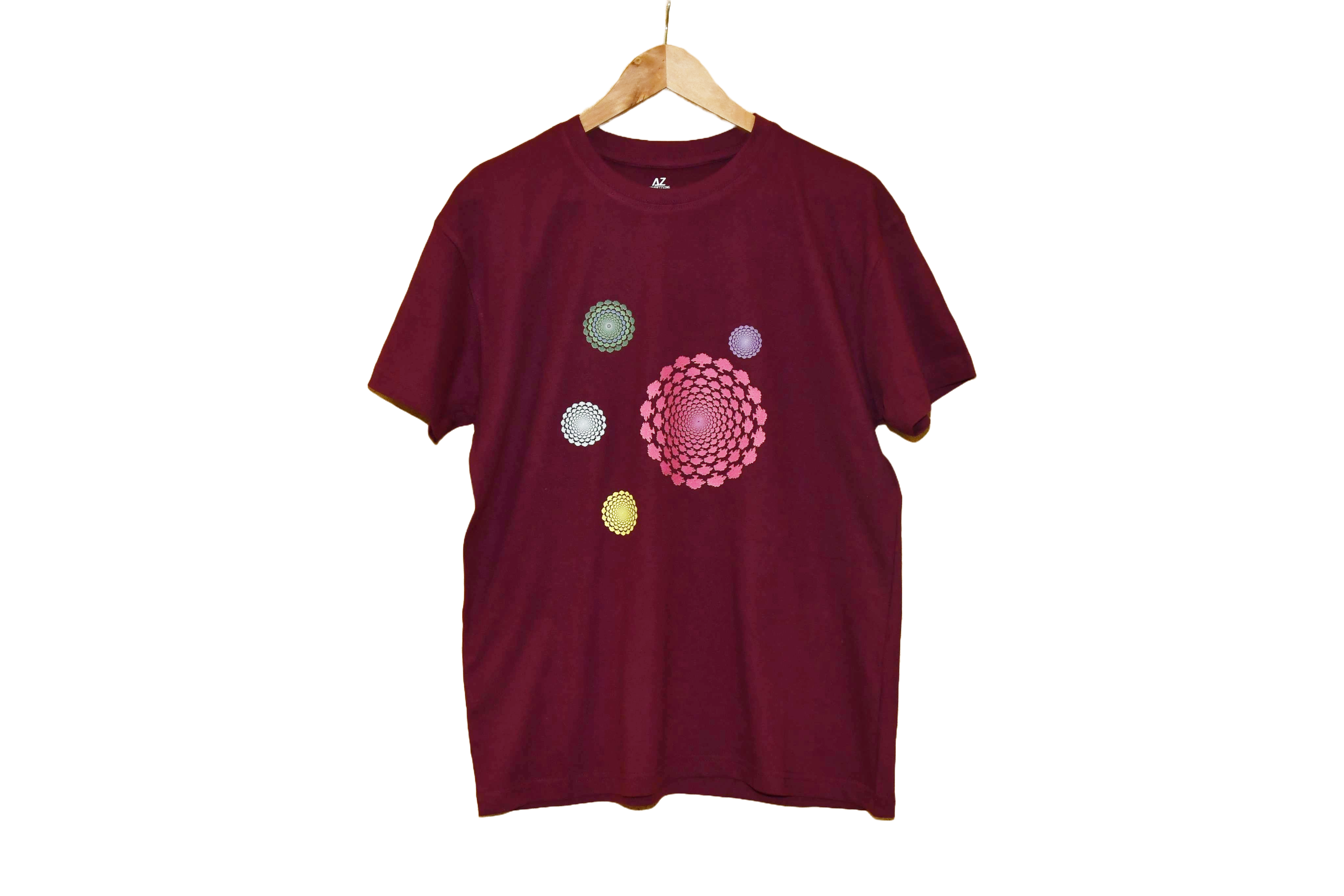Crew neck tee shirts in burgundy, Sizes: Small to XXL