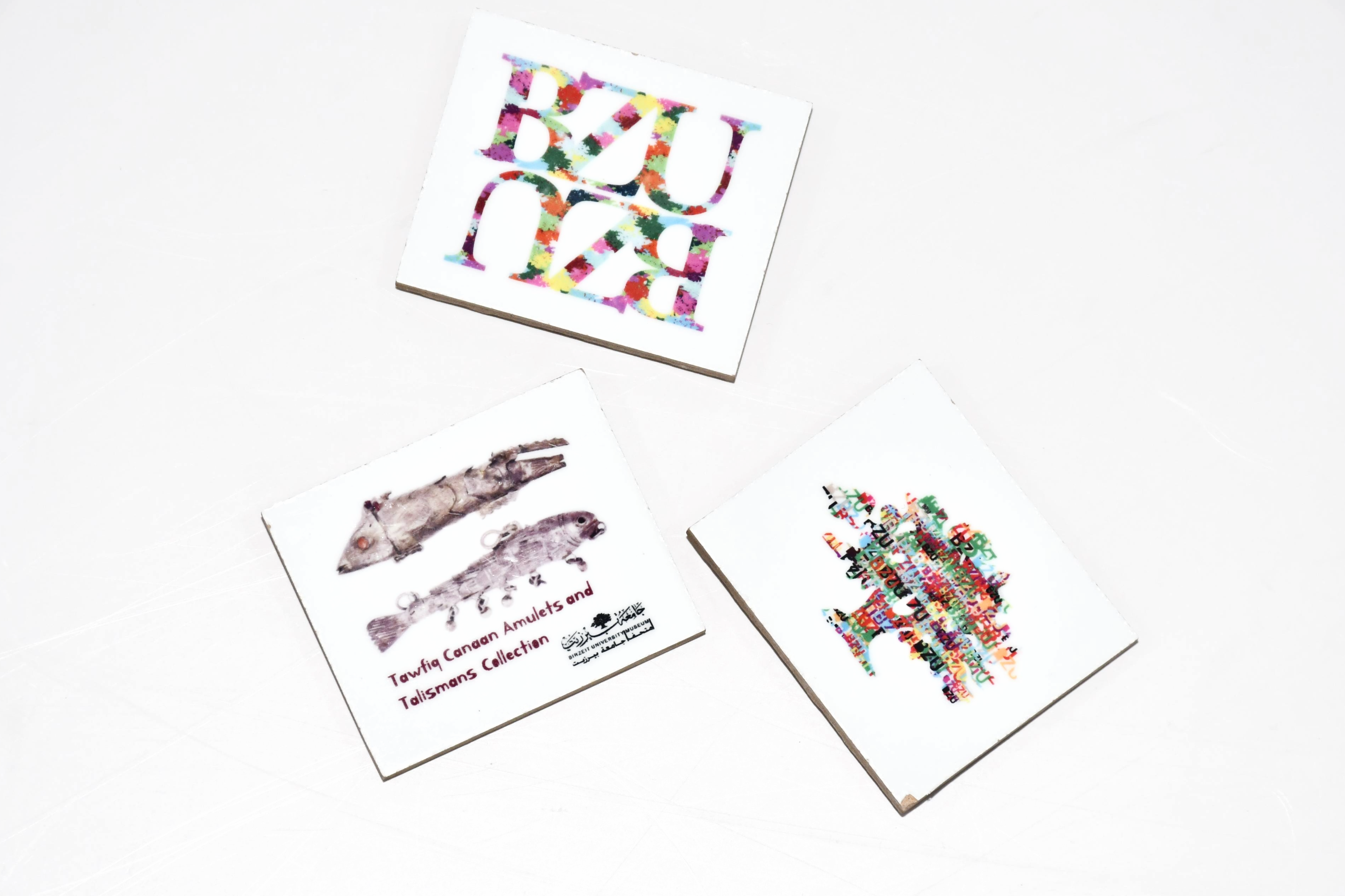 Magnet, designs from the Tawfiq Canaan collection, and BZU logo (Tree)
