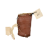 Malaq dress made with Abu Warda cloth, has a traditional malaq chest panel of flower pots, topped with two pieces of blue velvet cloth with a bird embroidered on it. The neck and shoulders are of red colored cloth and the sleeves are made with silk hirmizi cloth in addition to the original cloth of the dress with embroidered Bethlehem clock and a bird. The banayeq (sidelines) show embroidery of clock and floral motifs in addition to crosses.